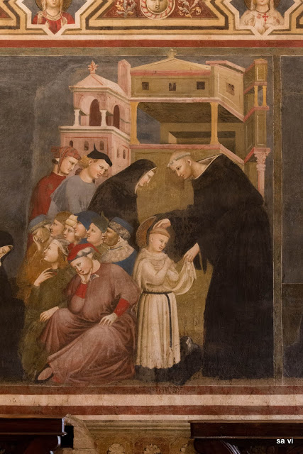 Nicola in Tolentino (um 1340); sie zeigt den Heiligen mit Lilie und Buch sowie