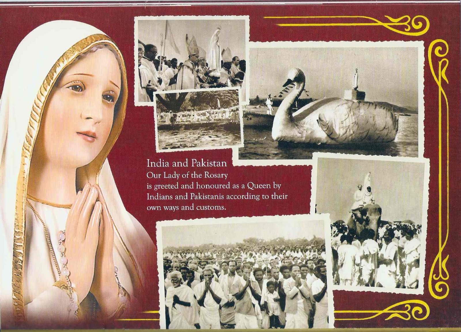 Bild aus dem Kalendar „Australia needs Fatima“ - August 2016, mit Bildern der Fatima-Pilgerstaue bei ihrem Besuch in Indien und Pakistan in den 50er Jahren.